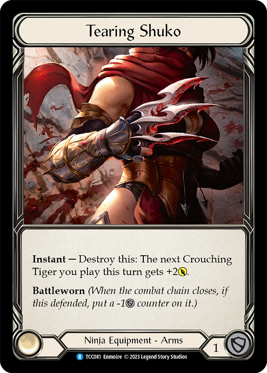 Instant -- Destroy this: The next Crouching Tiger you play this turn gets +2{p}. Battleworn (When the combat chain closes, if this defended, put a -1{d} counter on it.)